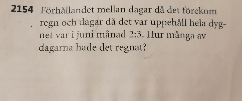 Du har a antal regndagar och b antal uppehållsdagar, förhållandet är 2:3.