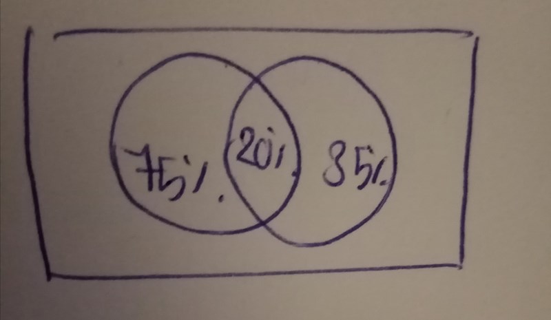 I en kommun gäller att 75% av de vuxna invånarna kan engelska, 35% kan tyska och 20% kan både engelska och tyska. Vi väljer slumpmässigt ut en person från kommunen. Hur stor är sannolikheten att personen