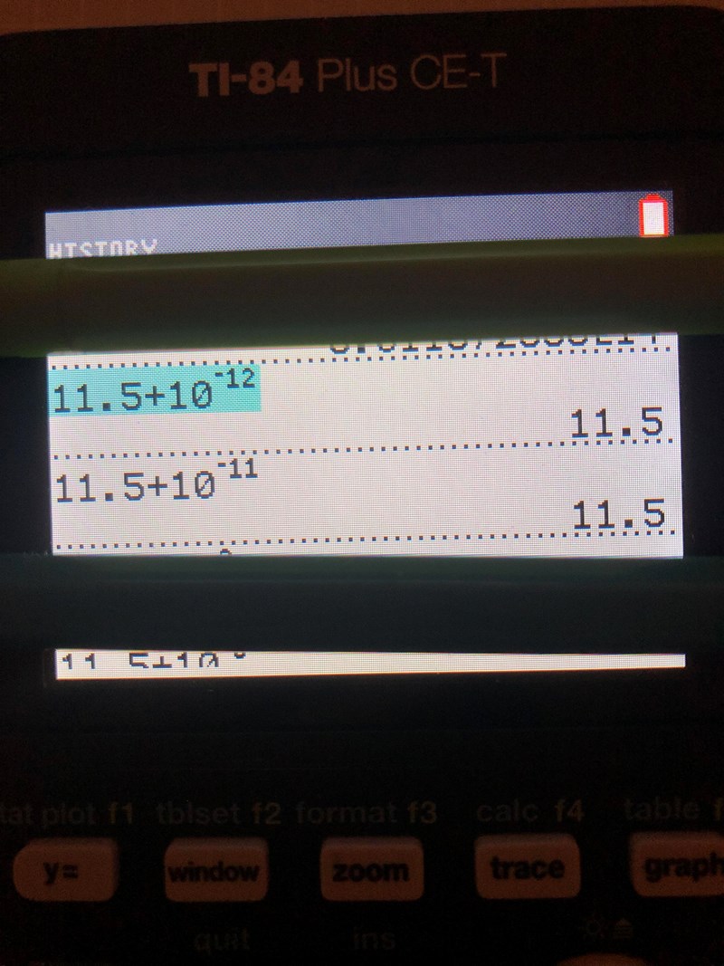 Egentligen är det första talet lika med 11,500 000 000 001 och det andra 11,500 000 000 01 (om jag räknade rätt på nollorna) men din miniräknare avrundade lite.