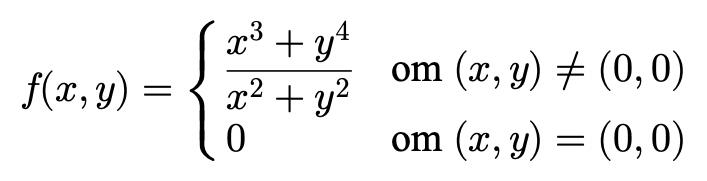 Jag har fastnat på en uppgift som handlar om kontinuiteten för en flervariabel funktion, och jag skulle behöva lite hjälp för att förstå hur man avgör vid vilka punkter om funktionen är kontinuerlig. Uppgiften är följande: