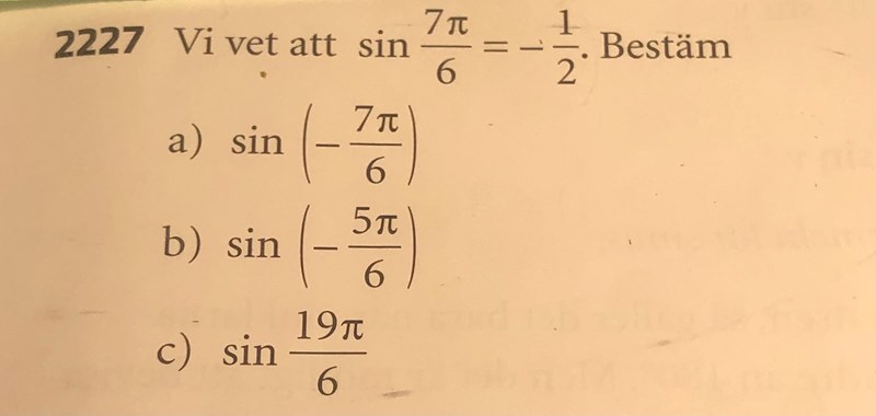 Här visar jag att sin 9pi/6 är samma sak som sin 7pi/6 och därför är svaret -1/2?