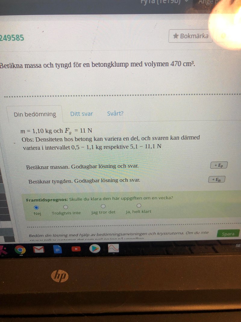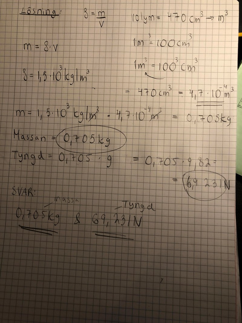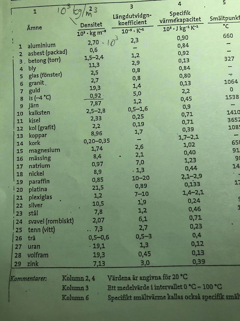 Om vi tar det lägsta som den får vara dvs 1,5, blir det då: 1,5*10^3 kg/m^3 i densitet?