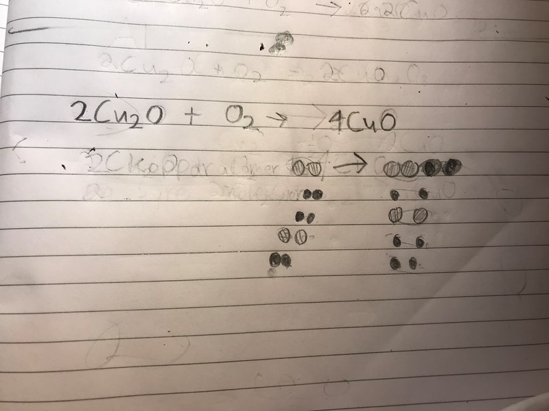 Balanseringen av reaktionsformlerna är jättebra beskrivna, men det riktigtr kryper i mig när någon skriver om "kopparoxidmolekyler" - sådana finns inte! Molekyler är alltid oladdade. Båda kopparoxiderna är uppbyggd av positivt laddade kopparjoner och negativt laddade oxidjoner, d v s kopparoxiderna är salter.
