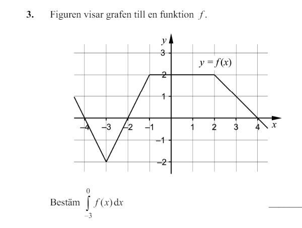 Om frågan hade gällt att beräkna arean mellan funktionsgrafen och x-axeln så skulle svaret ha blivit 4.