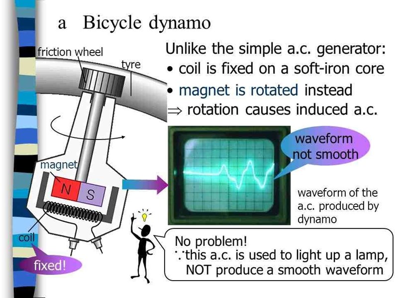 Spänningen är alltså ofta i verkligheten inte en slät och fin sinusvåg utan snarare en hackig, taggig triangelvåg. Detta beror dock mycket på vilken typ av magneto-generator man använder.