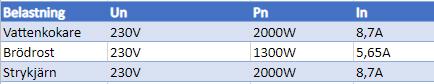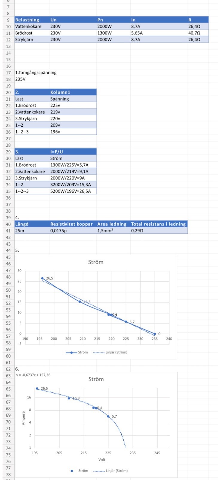 Beräkna nätets inre resistans vid varje belastningstillfälle.