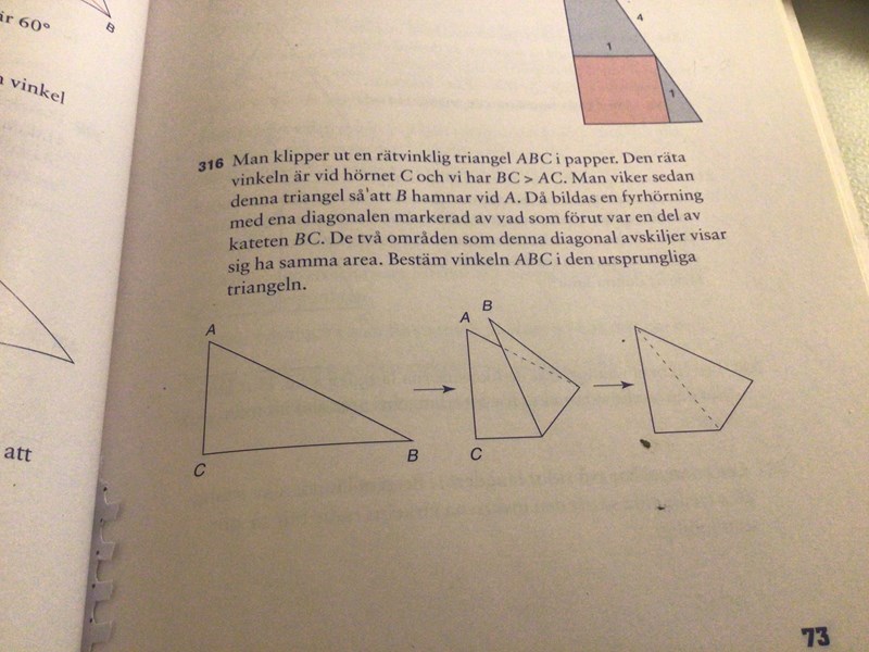 Har du prövat att klippa ut en triangel och vika den som det sägs i uppgiften?
