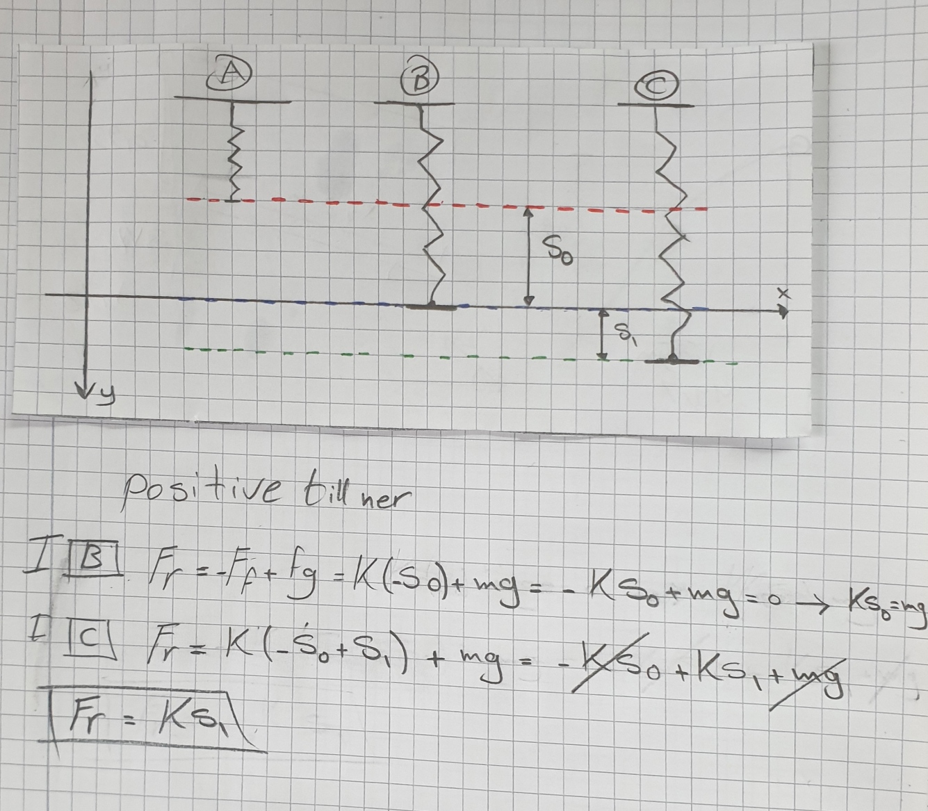 Positiv riktning är dit man själv väljer att sätta positiv riktning , vilket brukar vara uppåt för fjädrar som hänger i tak.
