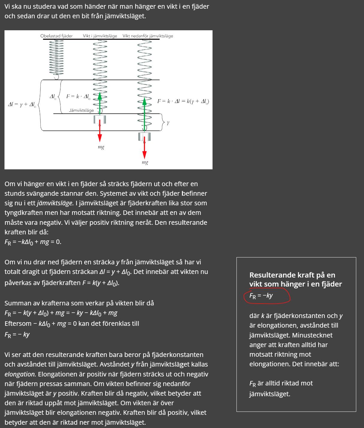 men eftersom i fysik bok säger det att Fr=-k y som lag