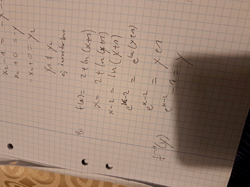 Vi vet enligt definitionsmängd att x>-1 för alla x och värdemängd är detsamma för inversa funktionen