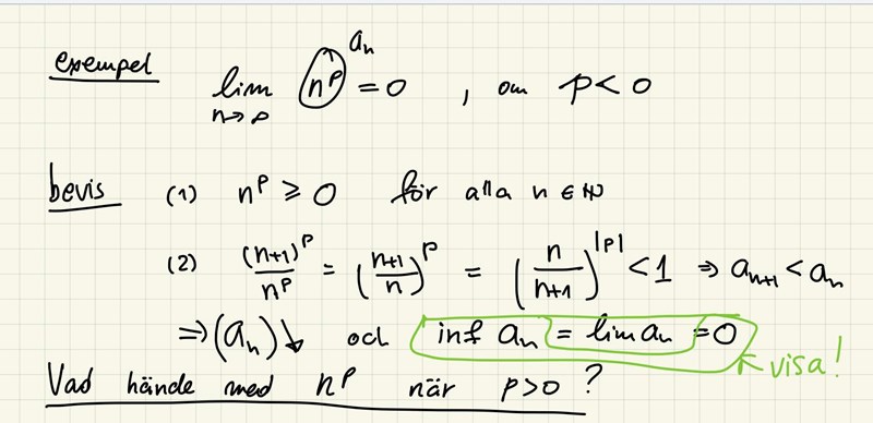 Hur bevisar jag att n^p går mot oändligheten för p>0 och n-->oändligheten?