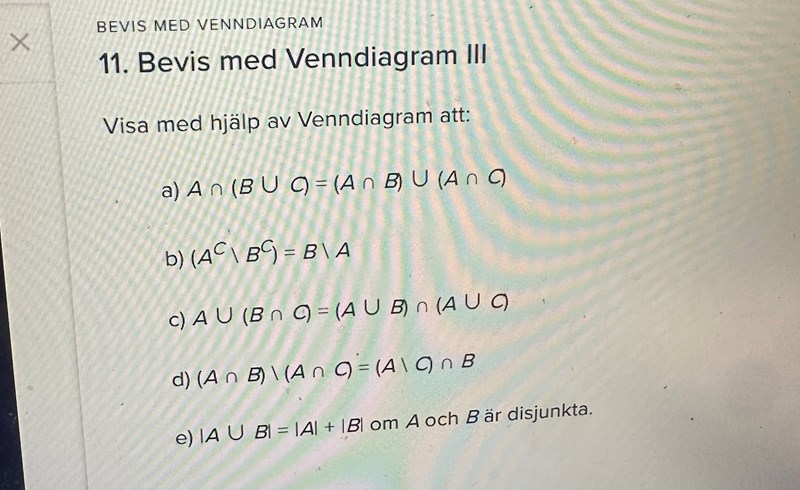 Uppgiften lyder "Visa med hjälp av Venn-diagram att ...".