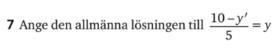 Om du skriver om ekvationen får den formen: y' + 5y = 10