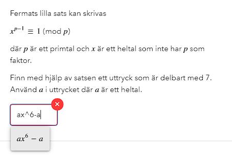 Den fungerar då den är kongruent med det förra utrycket och är delbar med 7, om x och a är=1