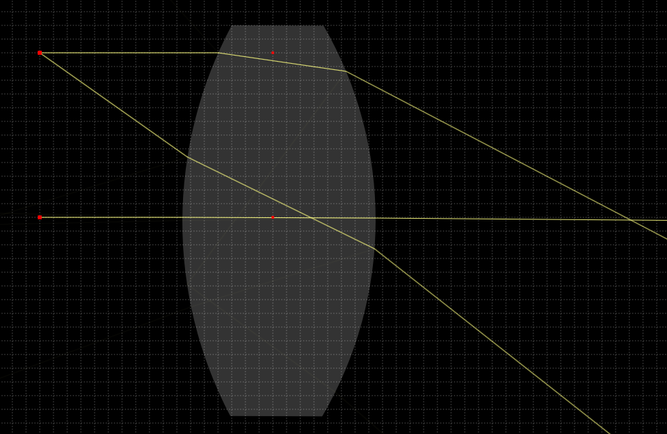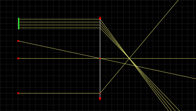 Här är simuleringen av en tunn (ideal/teoretisk) lins.
