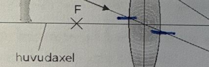 Vid linsens mittpunkt är då normalerna på båda sidor parallella