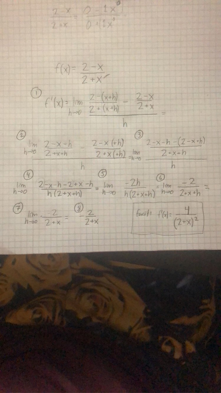ItzErre skrev:Adderade du h till nämnaren och täljaren i steg 2?
