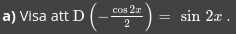Jag gjorde fler uppgifter i boken. Så exempelvis den här uppgiften är -x/2 den yttersta funktionen. cos x, den inre funktionen och 2x den innersta funktionen. Eller kan man skriva det som -cosx/2 är den yttre funktionen och 2x är den inre?