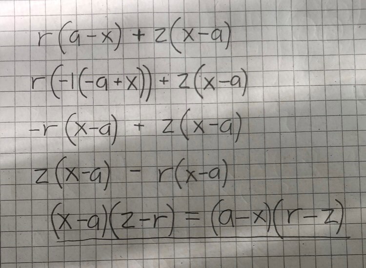 (a-x)(r-z), jag fick (x-a)(z-r) är dom två svaren = varnafra?