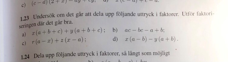 Förstår inte hyr jag ska tänka när jag ska faktorisera uttrycket i uppgift c)