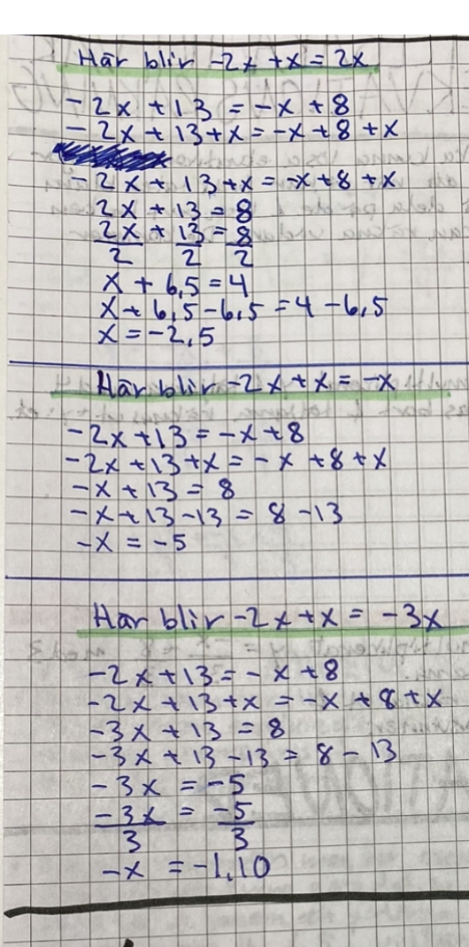 jag fick fram x= 3,50 men gjorde så här (se nedan) tror jag har följt alla matte regler…