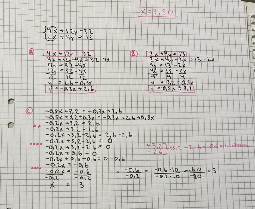 när jag försöker substituera det här och få ut ett x värde som blir 3,50 så blir de inte rätt ändå… har försökt på olika vis skickar bild på de med.