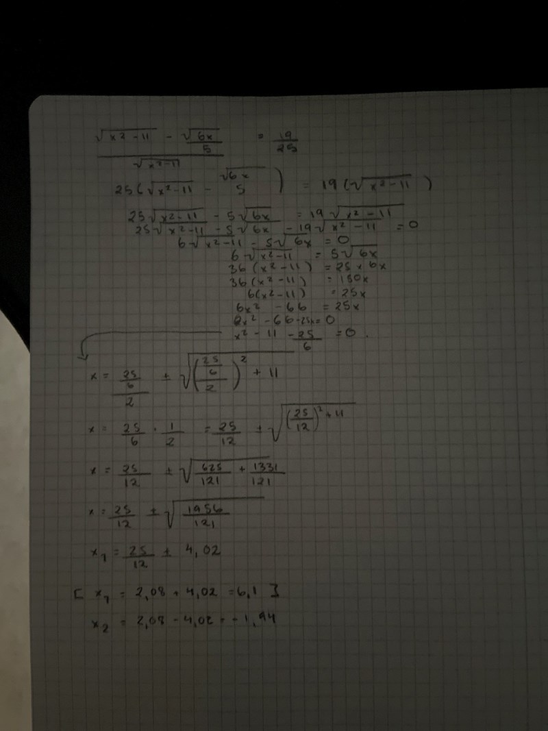hittils har jag fått att x = 5.99 och x = 6.1, dock ska svaret vara prick 6.