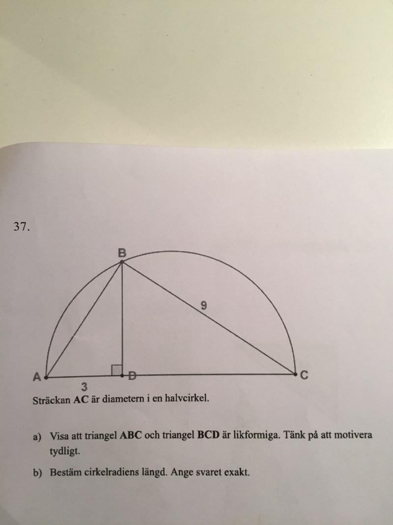 hej, jag vet inte hur jag gör på fråga b. tänkte försöka använda mig av pythagoras sats men jag har knappt siffror för att göra det. vet inte hur jag tar mig fram