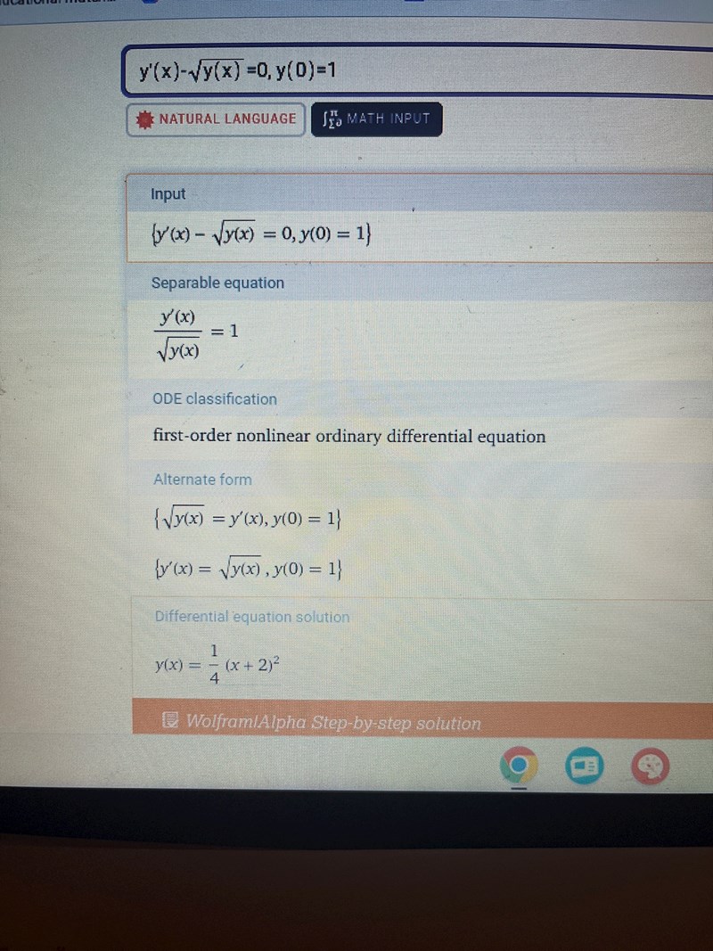 Dock kan diff.ekv. modifieras för att passa genom y'^2=y, men så var ej uppgiften.