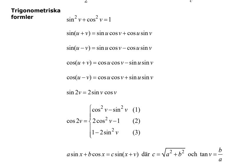 En bit ner hittar du dessa trigonometriska formler: