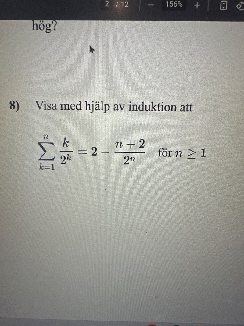 Hej! Jag försöker lösa denna induktions frågan