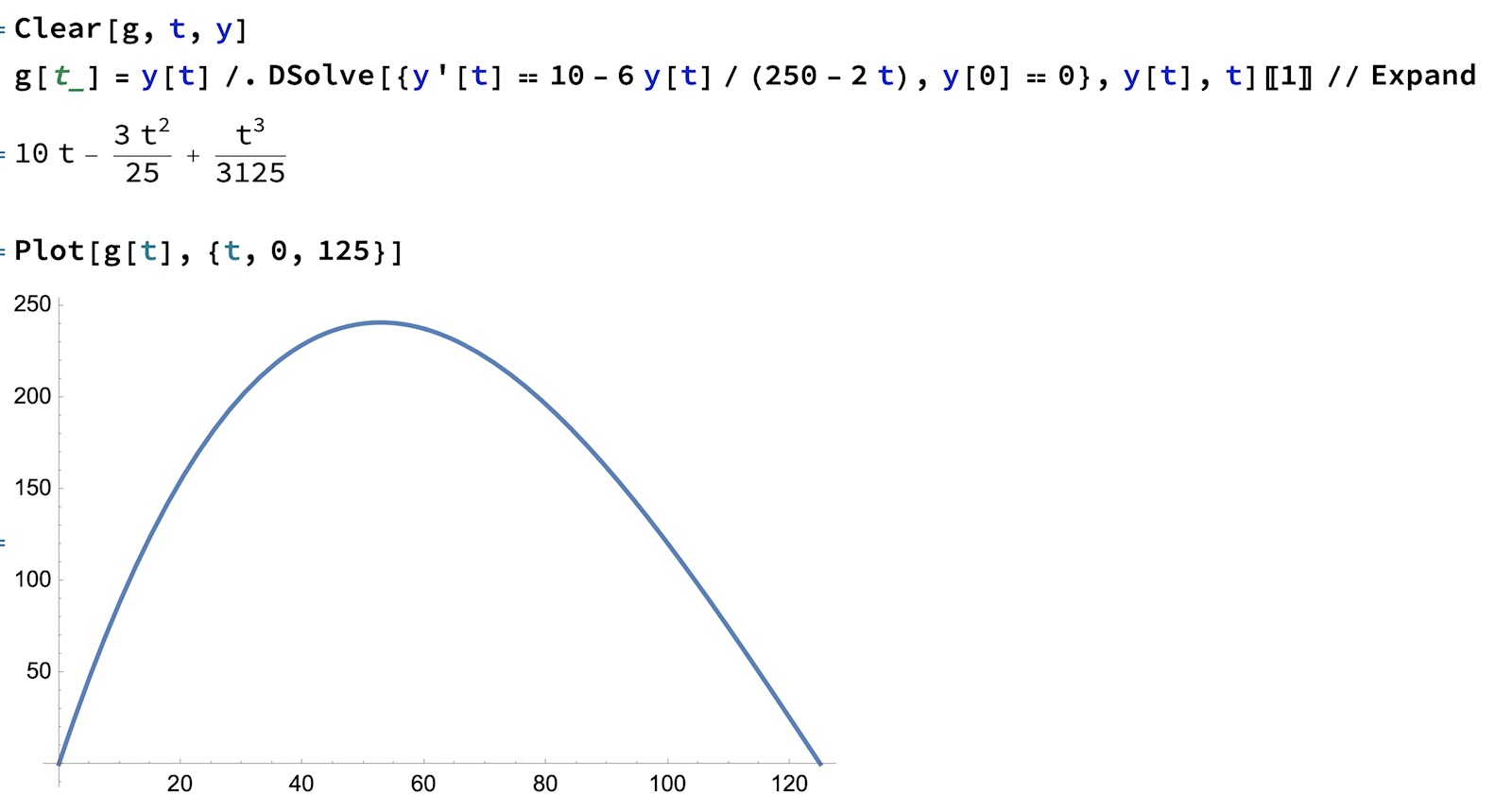 Den jag har just nu ser ut på följande vis y'(x)=10-6y/250, y(0)=0