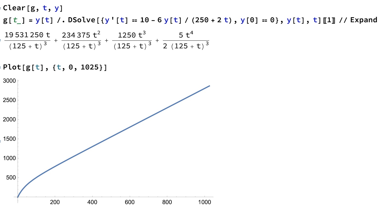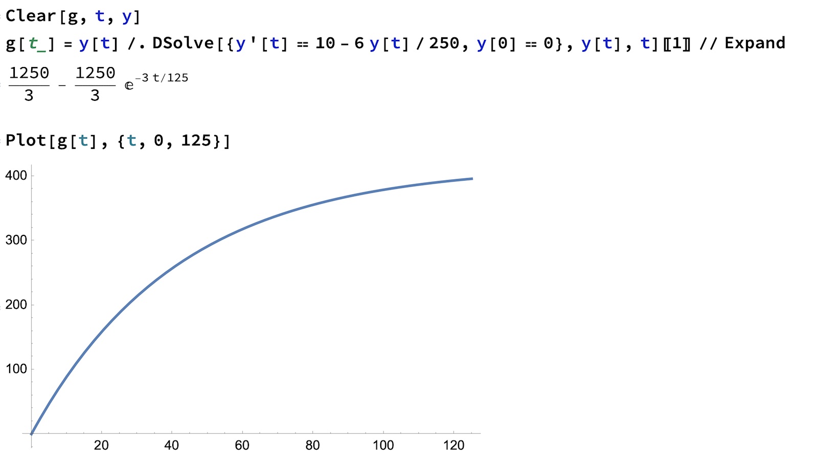 Den jag har just nu ser ut på följande vis y'(x)=10-6y/250, y(0)=0