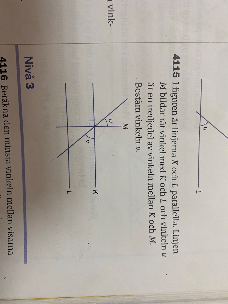 Vinkeln u är sedan en tredjedel av detta.