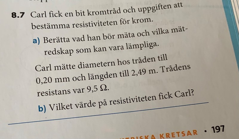 Du har en formel för rho, multiplicera båda sidor med A/L för att lösa ut rho och sätt sedan in värden