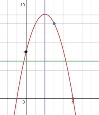 b=4Detta ger att f(x)=-x2+4x+5 (här är det inte fel att rita grafen, så du kan markera max, symmetrilinje etc)