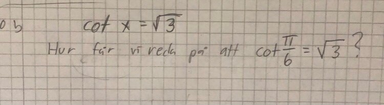 Alla videor jag kollar hoppar direkt och säger: ”vi vet att cot roten ur 3 är pi/6.