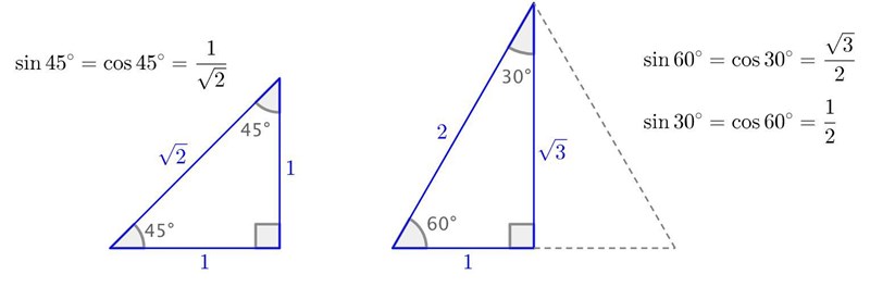 Känner du till och ? Om inte ska du lära dig det precis som med då de är standardvinklar och enkla att lära sig: