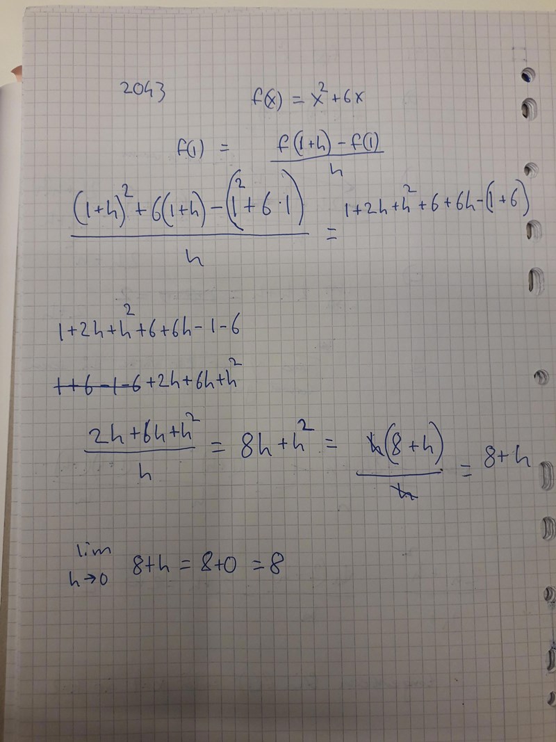 När du "ställt upp kvoten" i derivatans definition för funktionen i 2043 så borde det se ut så här