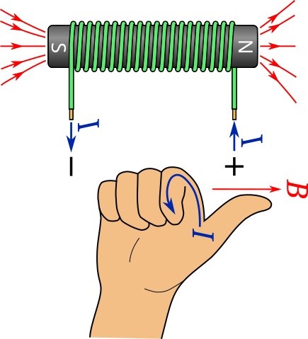 Den magnetiska flödestätheten B beror på strömmen I och antalet varv i spolen. Spolen beter sig som en stavmagnet så flödet går ut från nordpolen i en cirkel tillbaka till sydpolen, som så här: