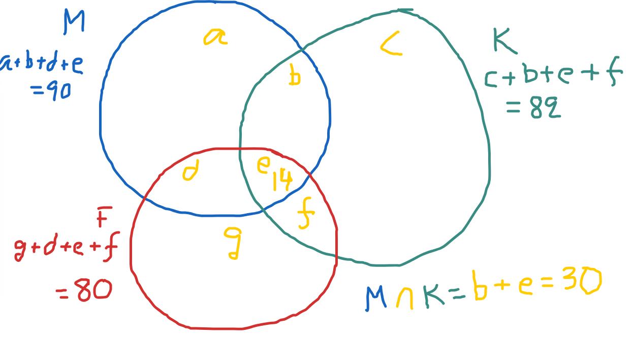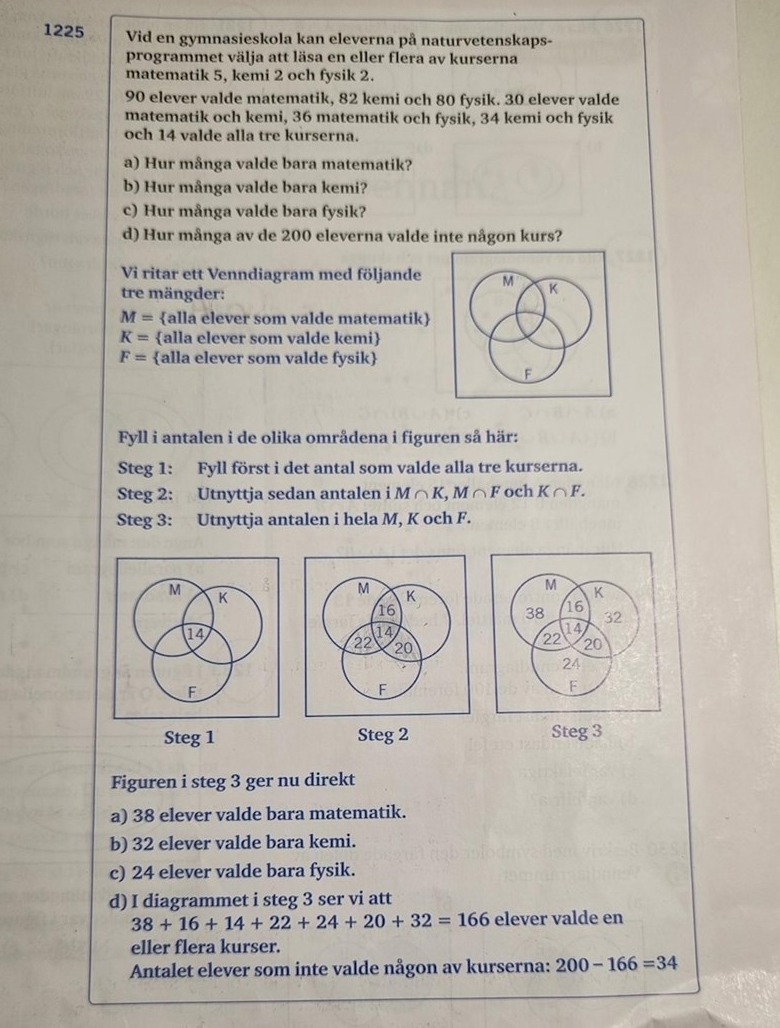 Hur kan de som valde fysik även ingå? Är de inte separata mängder? Jag fattar stegen men inte vad som ingår i vad liksom det står 14 för 3 styckna samtidigt som det är 14 plus 16 för matte och kemi eller?