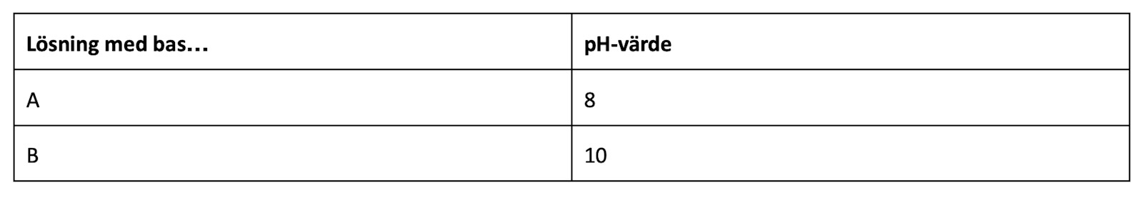 alltså är det okej/bra att jag skrivet "lösning med bas..." eller borde jag göra min tabell på något annat sätt? Labben gick ut på att blanda en bas med vatten och mäta pH-värdet.
