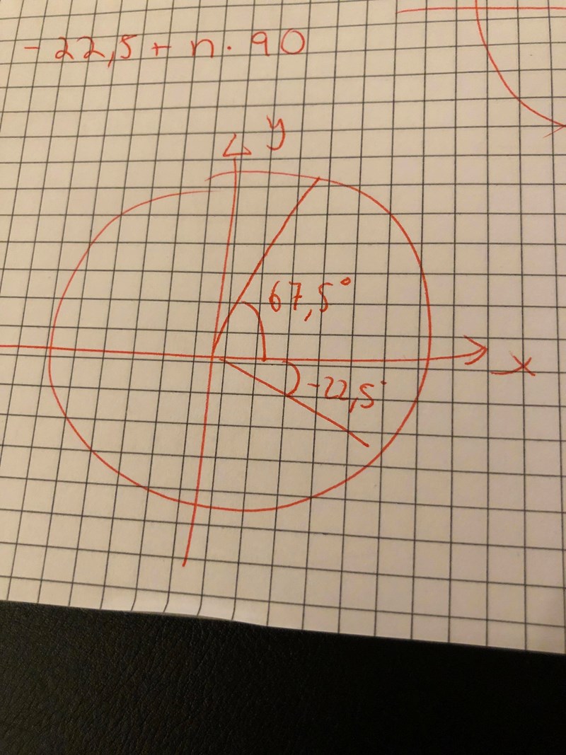 Det ger samma svar men hur kmr det sig att de valde 67,5 istället för -22,5