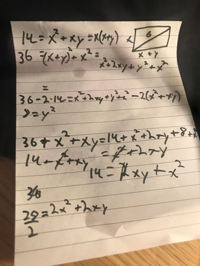 7 år senare lyckades jag hitta en snygg lösning till detta problem. Notera att första kvadreringsregeln(Ingår iallafall i matte direkt åk 9) ger . Vi vet att . Men Alltså får vi .Därmed så är och omkretsen 16.