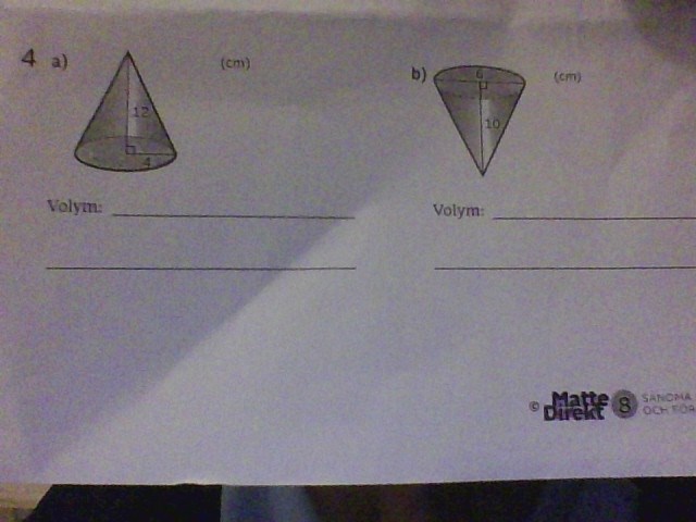 Här är formeln för volym till konen. Se om du kommer vidare med hjälp av denna?