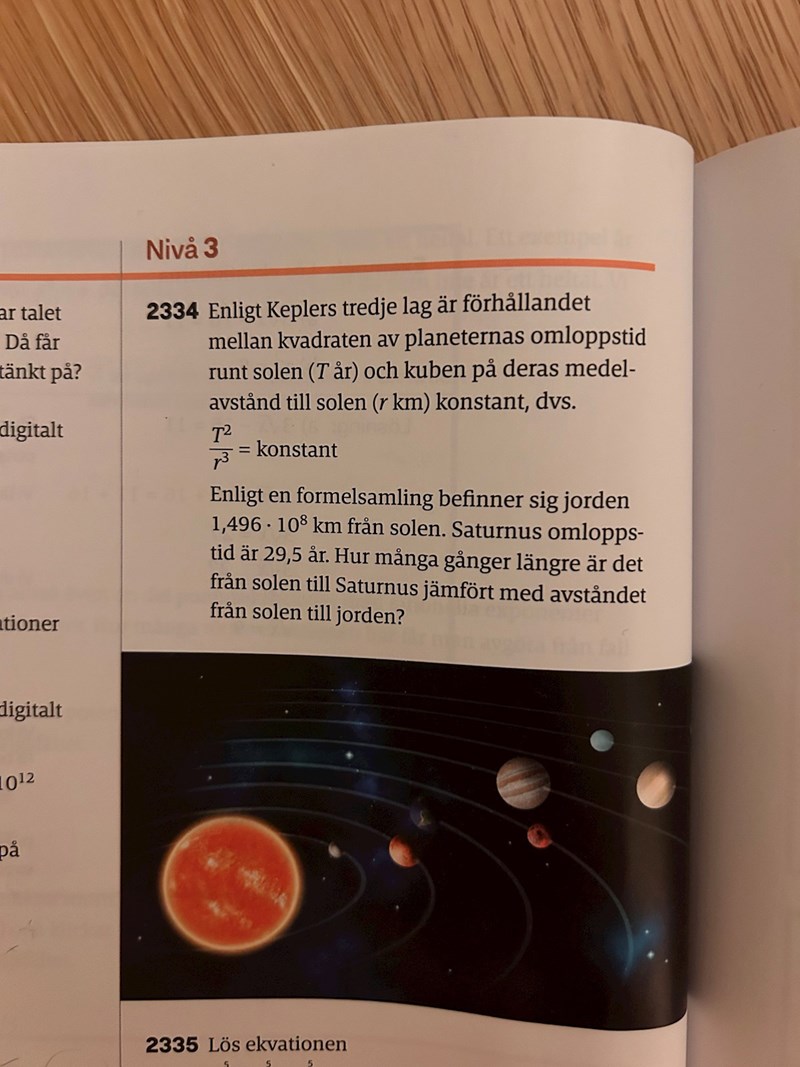 Hej! Jag glömde nämna att jorden befinner sig 1,496•108 km från solen & Saturnus omloppstid är 29,5 år!