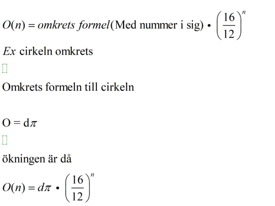 Omkretsen ökar exponentiellt med 16/12 för varje figur skriv en exakt formell för omkretsen.