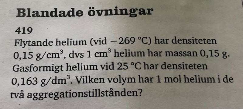 Ska jag ta fram två olika volymer för vardera aggregationsfas (dvs flytande och gas)? Det ska då anges i g istället för volym?