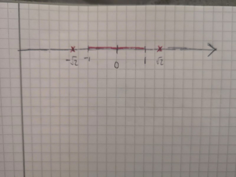 Micimacko skrev:Nästa steg blir väl att lösa ut vilka x som är ok eller inte i den sista olikheten du har skrivit upp.