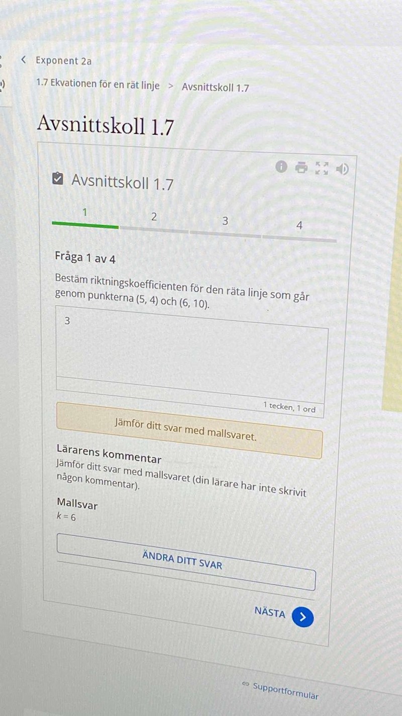 I nämnaren skrev du 2, det ska vara 1 eftersom 6-5 = 1, alltså 6/1=6. Annars är det helt rätt!